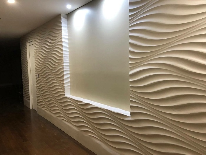 Визуальный эффект – рельеф добавляет глубины, помогает зонировать пространство и скрывать мелкие неровности основания.